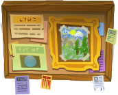 This model of the Jammer Central consisted of three main bulletins: a special calendar with events going on during the month(s) or season, a video, and a gallery of artwork submitted by Jammers (keep in mind this was way before Masterpieces existed), as well as a Submit-Your-Work button. If your art was featured in the gallery, you would receive an Artist Plaque for your den.