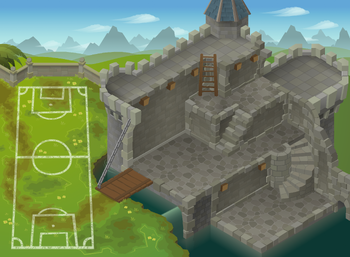 This glitch would happen with only two dens: the Small House and the Castle. When the glitch occurred in a castle den, it would be labeled as ''Yard Castle Soccer''.